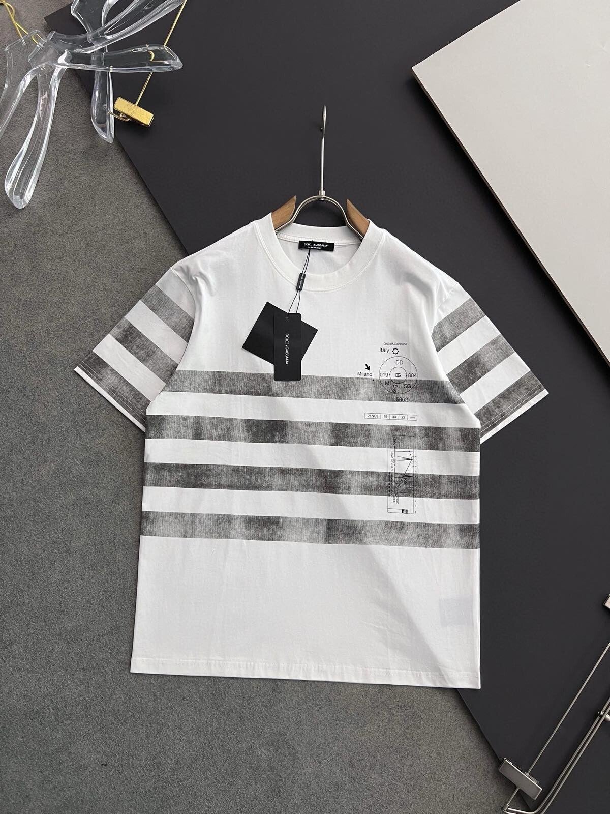 Otkrijte savršen spoj stila i udobnosti uz Dolce&Gabbana majicu kratkih rukava s prugastim slikama. Idealna za ležerne izlaske, izrađen od vrhunskih materijala, osigurava vam udobnost tijekom cijelog dana, dok daje suptilan modni izričaj. Dodajte dašak luksuza u svoj ormar s ovom Dolce&Gabbana majicom. Naručite sada i doživite neusporediv stil i udobnost!